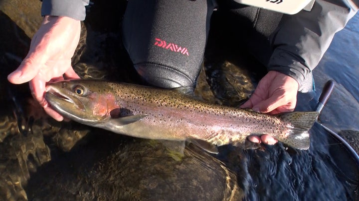 今回は延べ竿一本で大型ニジマスに挑みます。