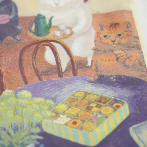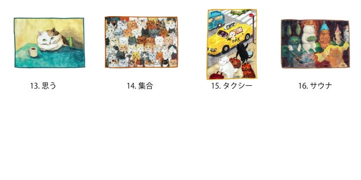 カマノレイコさんの作品は、猫や動物たちをモチーフにしており、日常の暮らしを楽しく描いています。