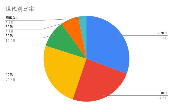 - 世代別では20代が30.7%で最も多く、国別では日本人が92%、外国人が8%