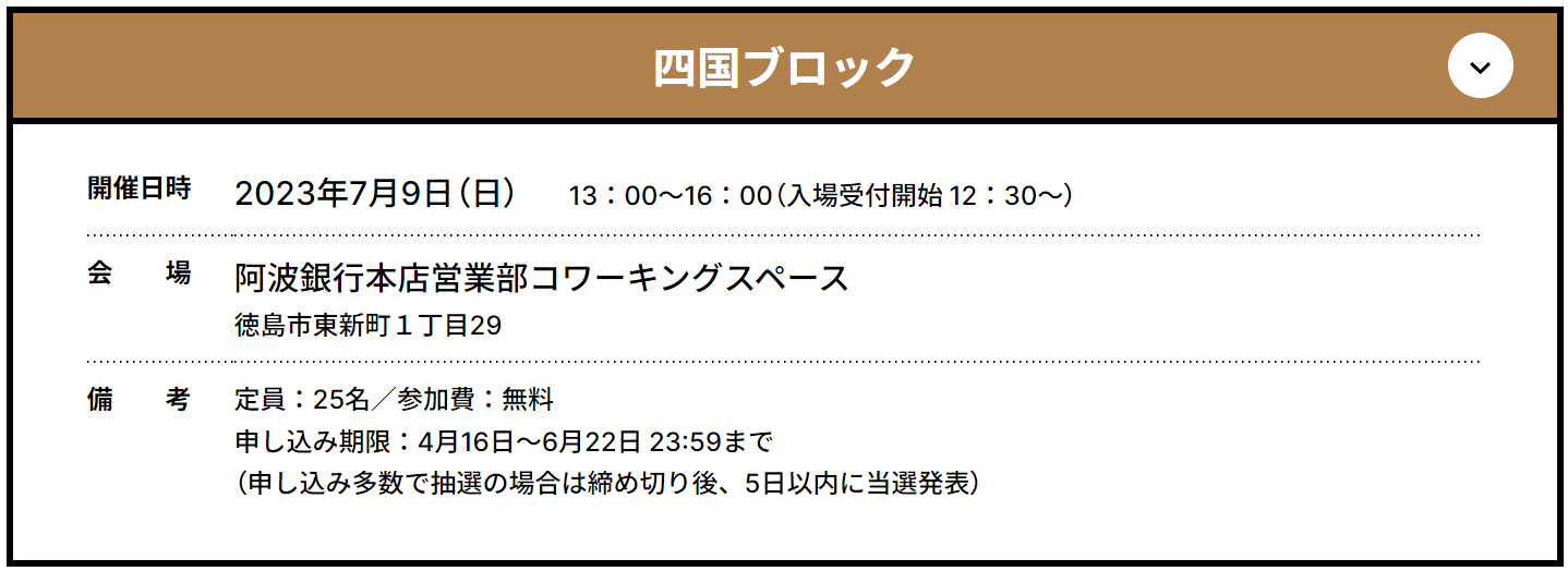 会場:阿波銀行本店営業部コワーキングスペース (徳島市東新町1丁目29)