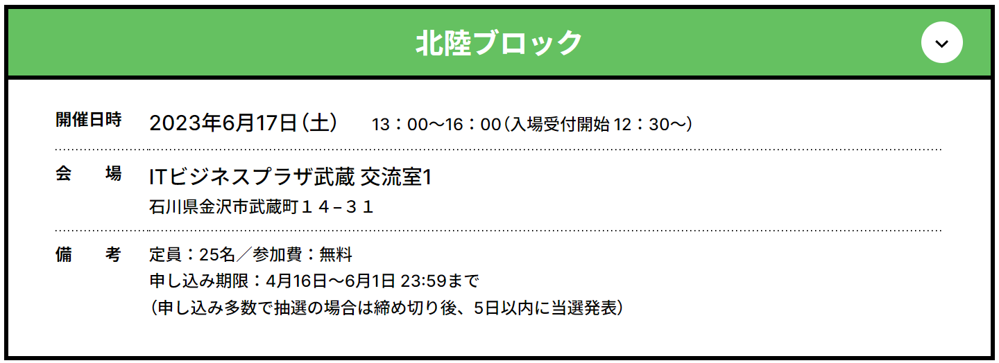 会場:ITビジネスプラザ武蔵 交流室1 (石川県金沢市武蔵町14−31)