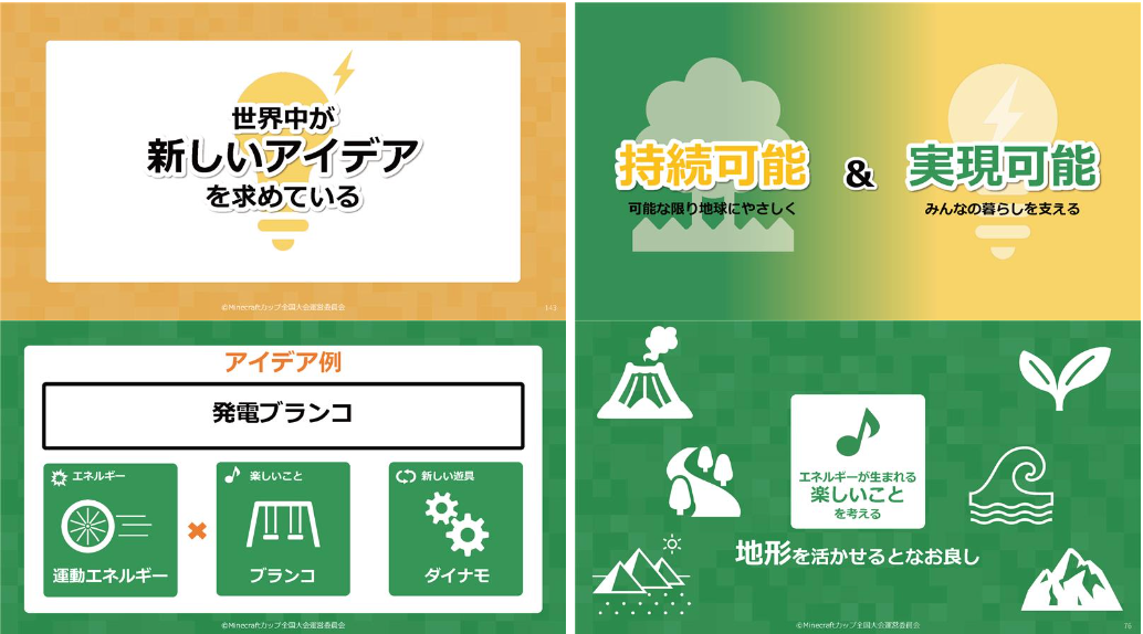 Minecraftカップでは、プログラミング体験やデジタルなものづくりを通じた問題発見・解決を目指すツールとして、世界各国の教育現場で活用されている「教育版マインクラフト」を活用し、全ての子どもたちにプログラミング教育やデジタルなものづくりに触れられる機会を届けたいと考えています。