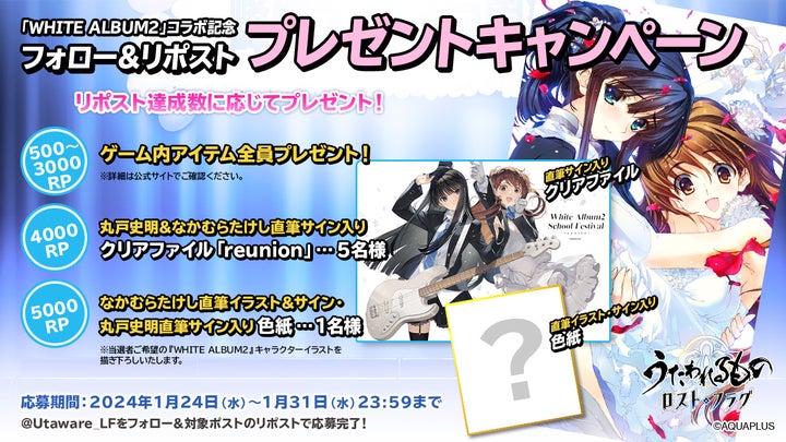 • 「うたわれるもの ロストフラグ」公式X(旧Twitter)でコラボ記念プレゼントキャンペーンも開催