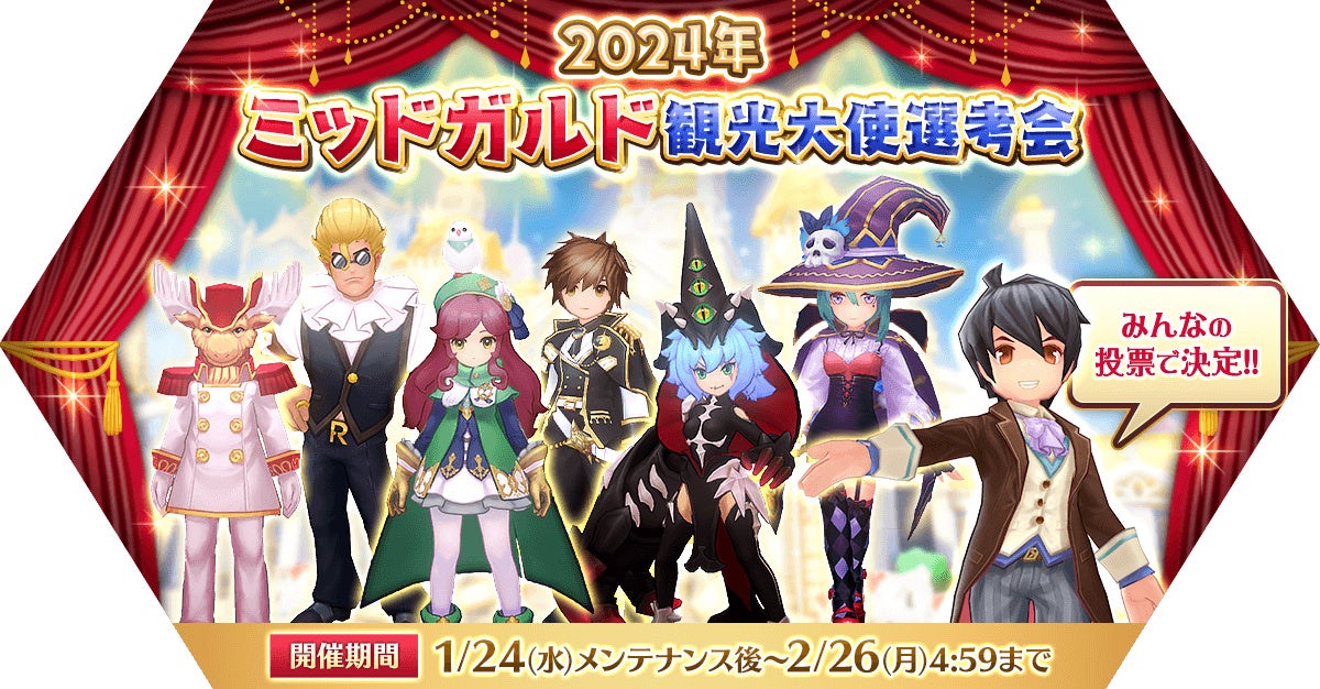 また、「2024年ミッドガルド観光大使選考会」も開催され、投票すると「選考会謝礼引換券(2024年2月)」を集めることができます。