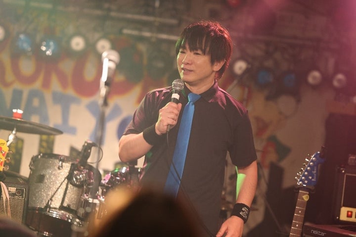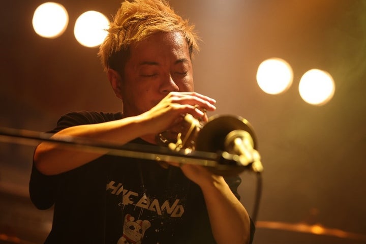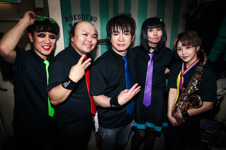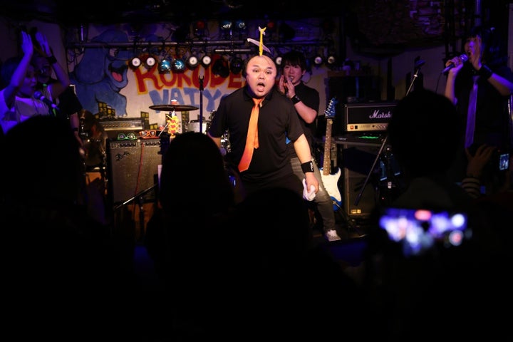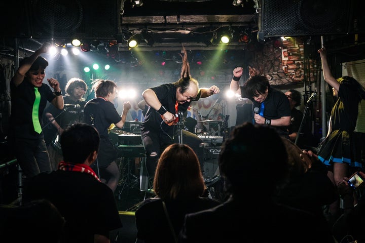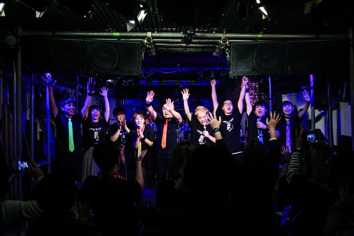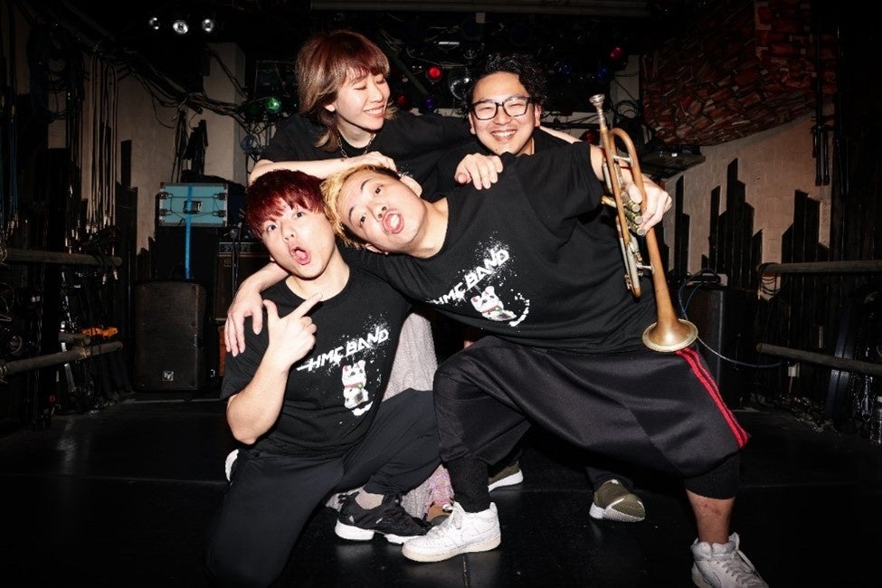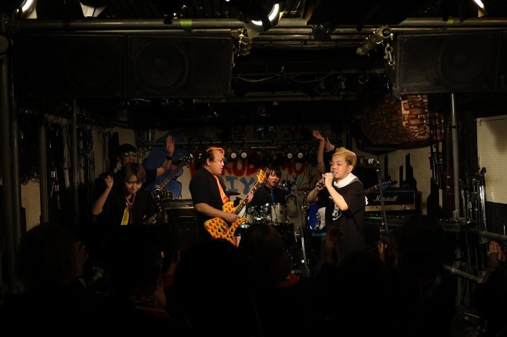 HMCは変拍子の曲で観客を踊らせ、目隠し演奏も披露しました。