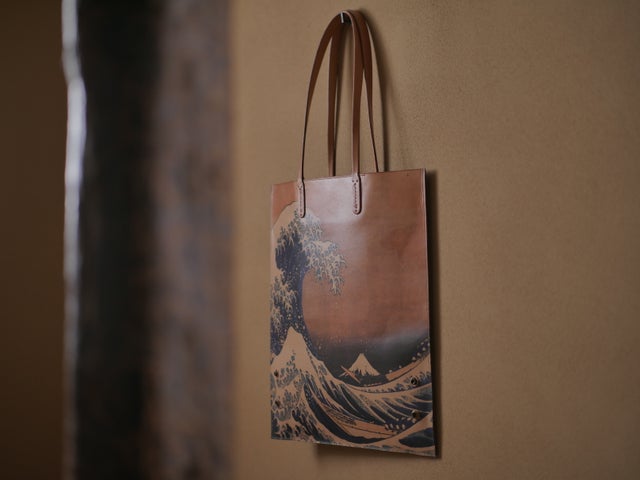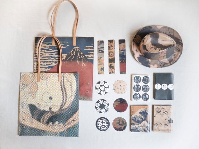 経年変化が楽しめる耐久性に優れた素材を使い、葛飾北斎をテーマにしたバッグや小物を展開しています。
