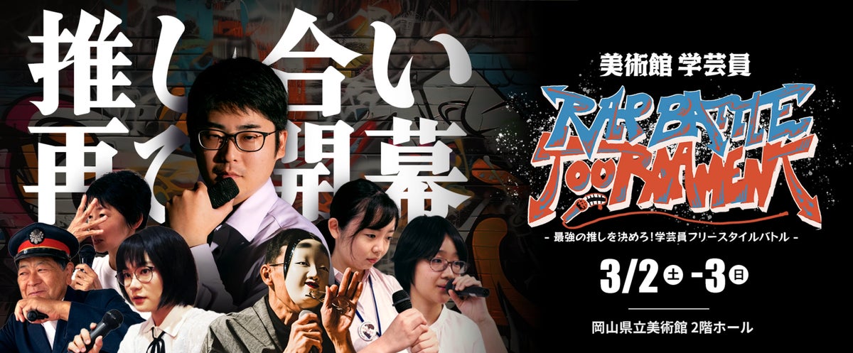 - 2024年3月2〜3日に岡山県立美術館ホールで開催される「学芸員ラップバトルトーナメント」の2回目が注目されています。