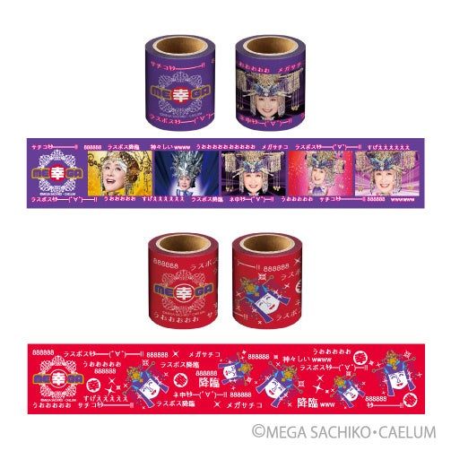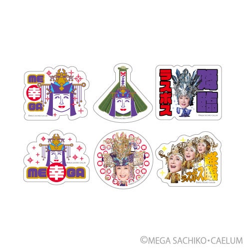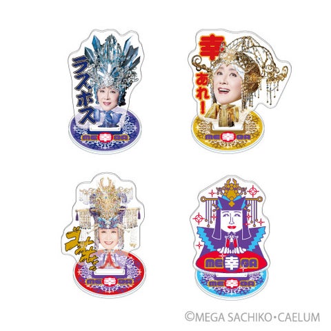 - MEGA幸子のアクリルスタンド、絵馬チャーム、アクリルキーホルダー、ステッカー、御朱印帳、ボールペン、マグカップ、アクリルスマホスタンド、ポーチ、クリアファイル、缶ミラー、養生テープなどの商品も販売