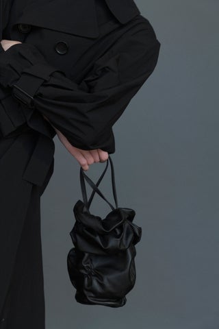 ギャザーが生み出すユニークな表情が、スタイルに奥行きと興味深さを加えています。