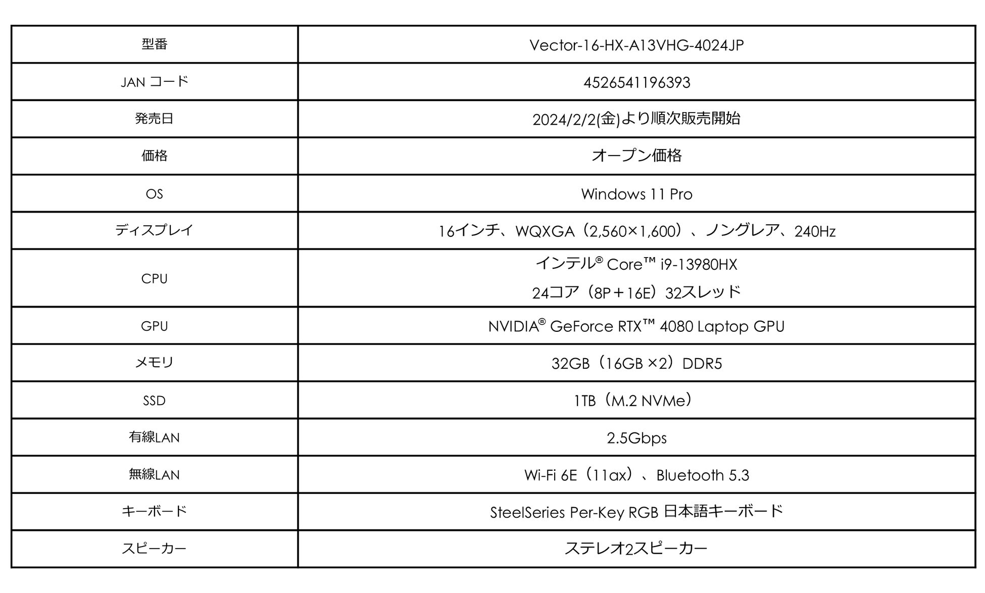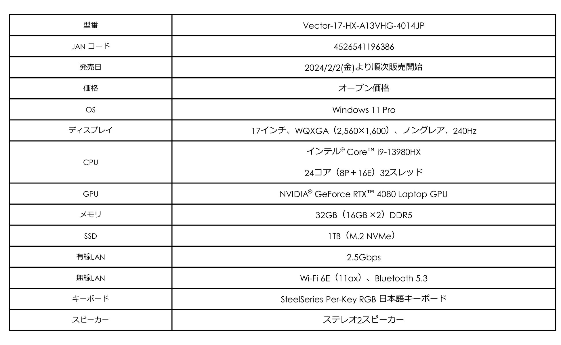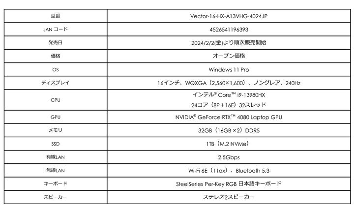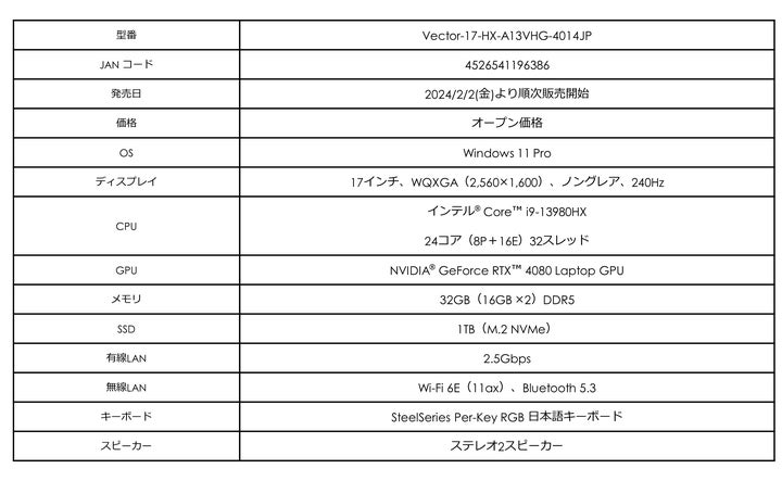 - 「Vector 16/17 HX A13V シリーズ」は、プロゲーマー向けのウルトラハイスペックモデル