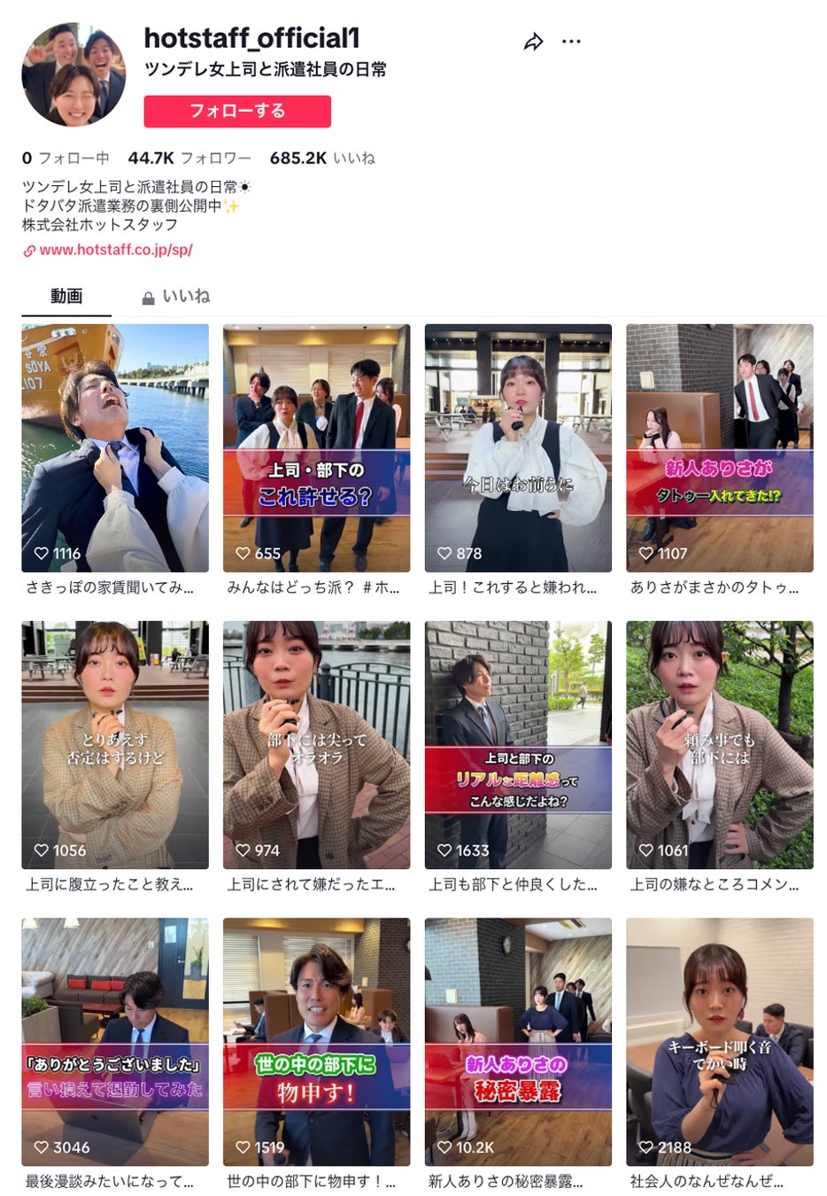 そこで、従業員や派遣スタッフ向けにTikTokを開始し、4.5万人の支持を得ています。