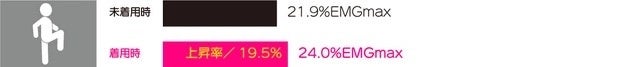 一般女性11名での試験により、着用時の大腿直筋の筋活動量が増加したことが実証されている。