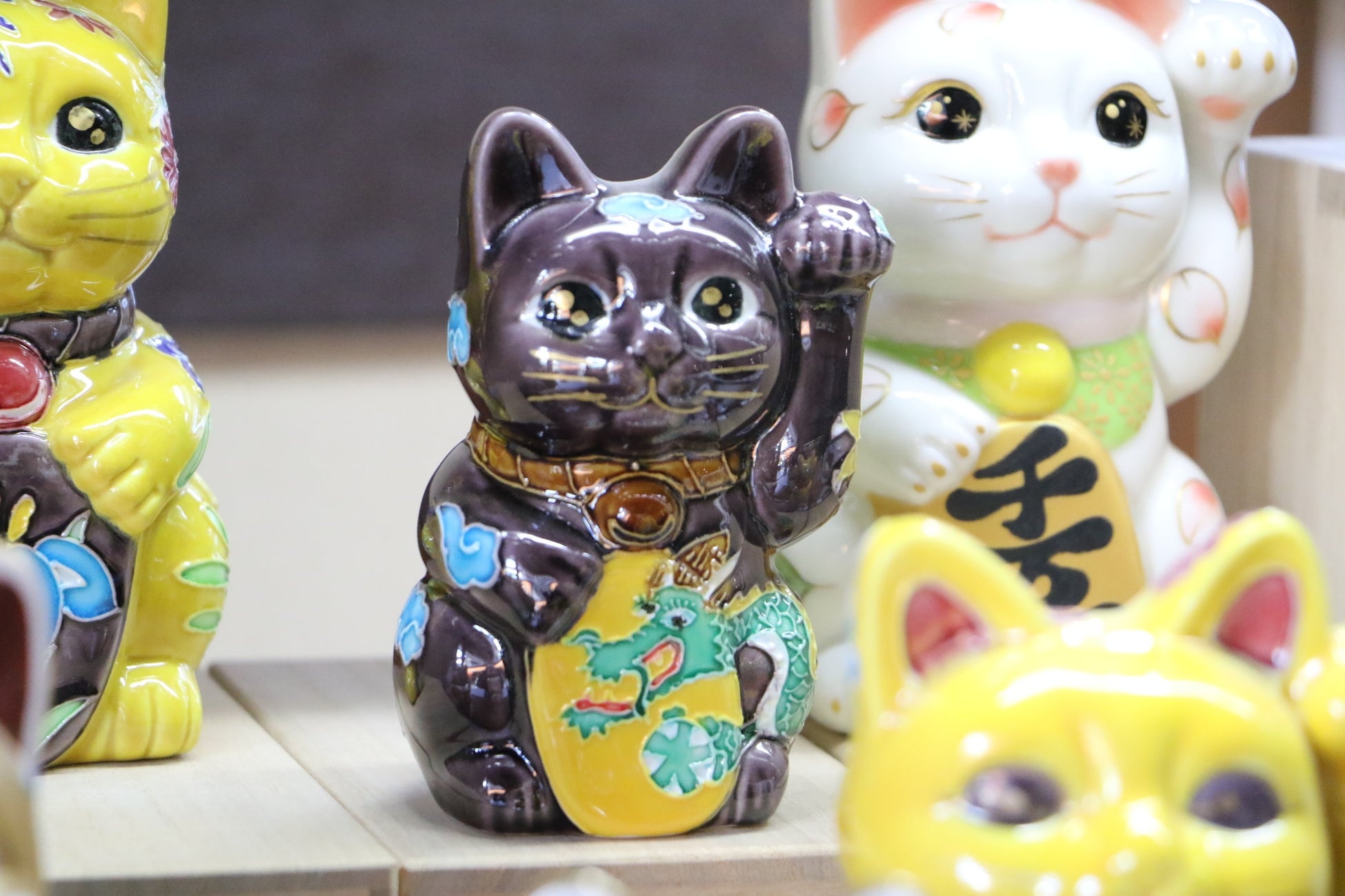 陶あんでは珍しい招き猫を見つけ、泉涌寺では辰年に公開される『雲龍図』を拝観します。