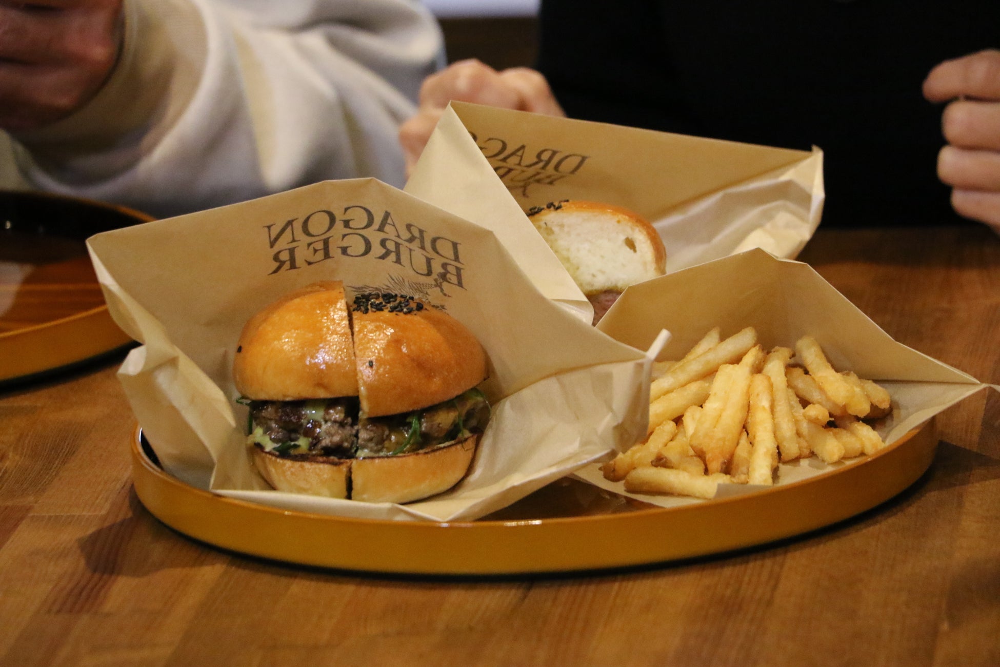 • ドラゴンバーガーでユニークなハンバーガーを試食