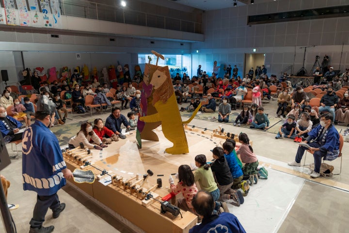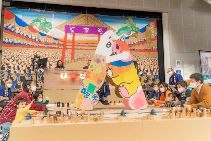 このイベントでは、ダンボールで作られた等身大の力士を使ってチーム対抗の相撲対戦が行われます。