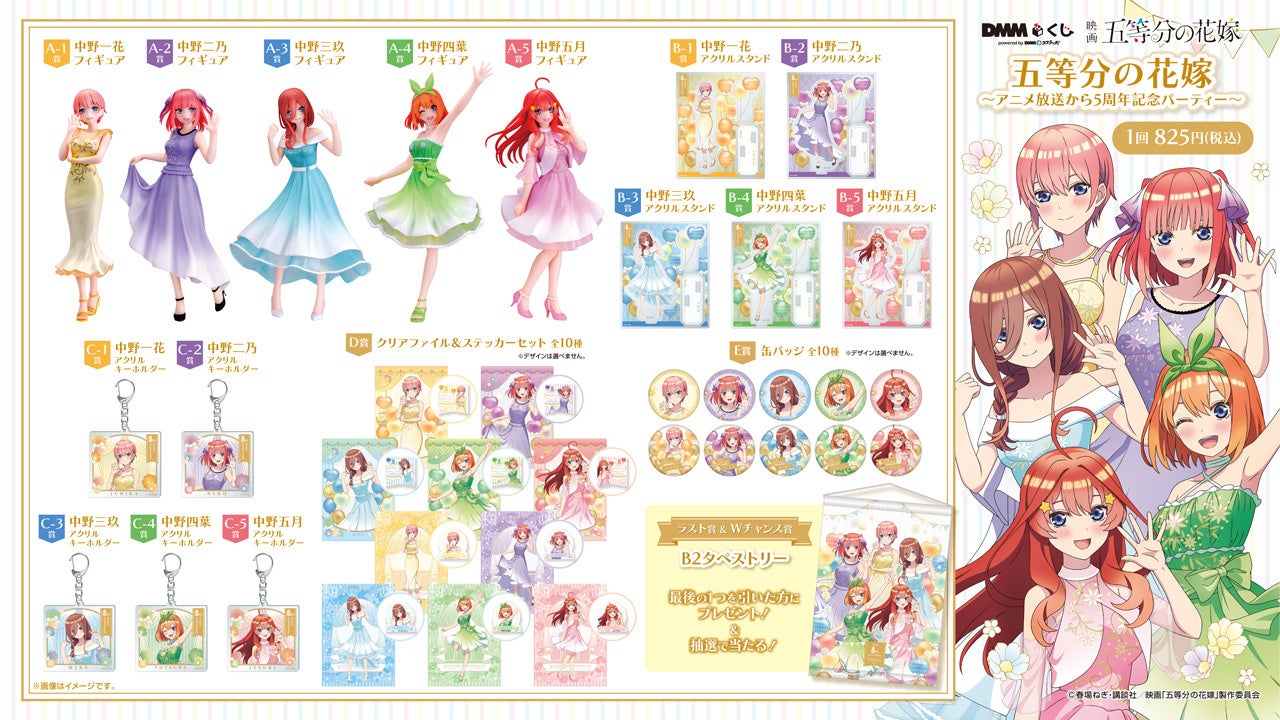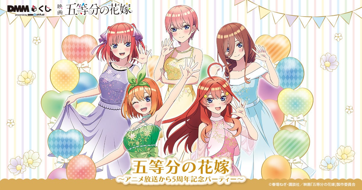 - 「DMMくじ五等分の花嫁 〜アニメ放送から5周年記念パーティー〜」は、映画「五等分の花嫁」のキャラクターを初めて「DMMくじ」で賞品化したものです。