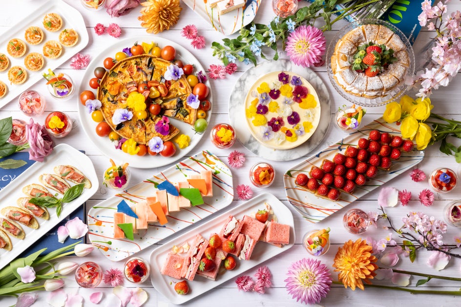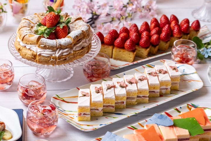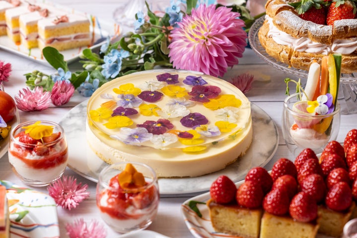 第1期の「桜&ストロベリー」では、カラフルなエディブルフラワーや旬のいちご、桜のスイーツが楽しめます。