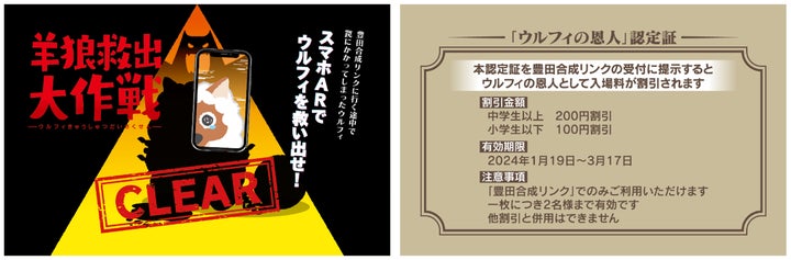 謎解きをクリアすると、ウルフィを救出した証として認定証がもらえ、豊田合成リンクの入場料が割引されます。