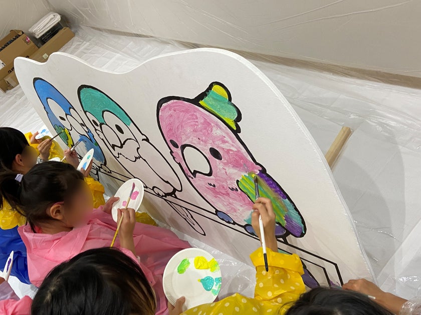板絵には名古屋の名所や動物、名古屋城の鯱などが描かれ、子供たちはテーマに合わせてペイントを楽しんでいました。