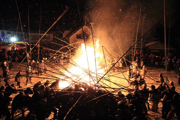 この行事では、天筆まつり、鳥追い行事、そして最も注目される竹うちが行われます。