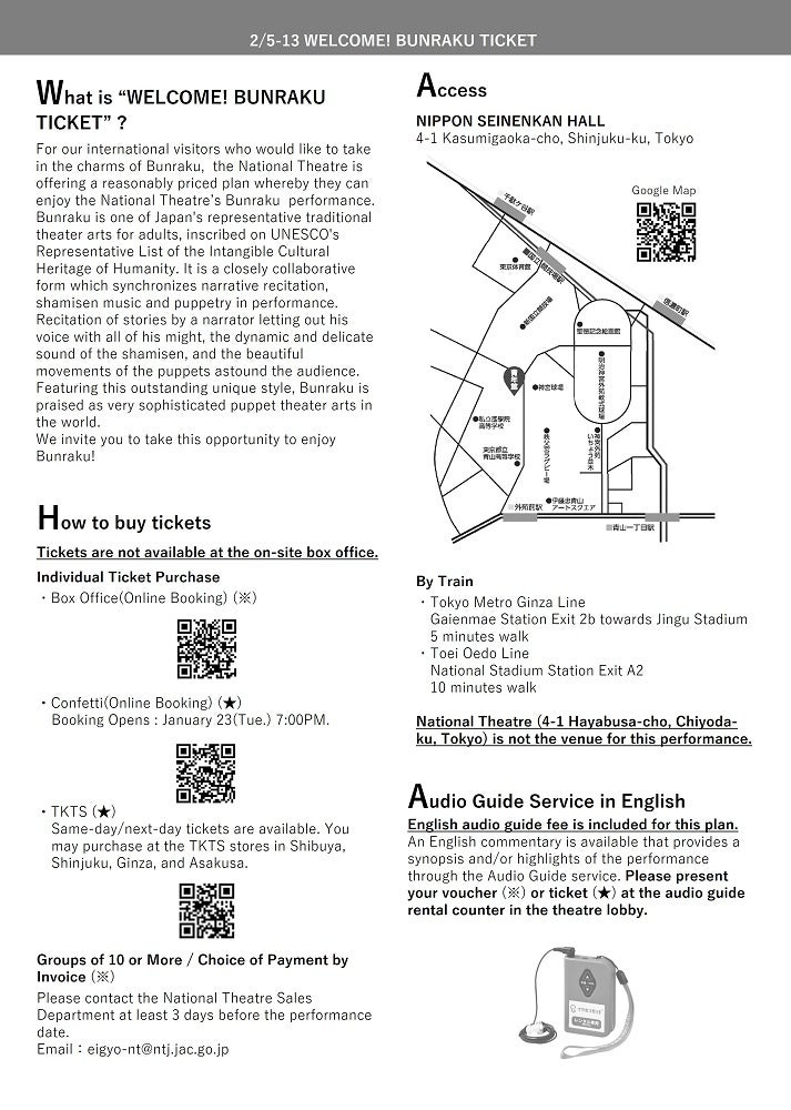 - 購入方法は国立劇場チケットセンターやConfetti、TKTSなど