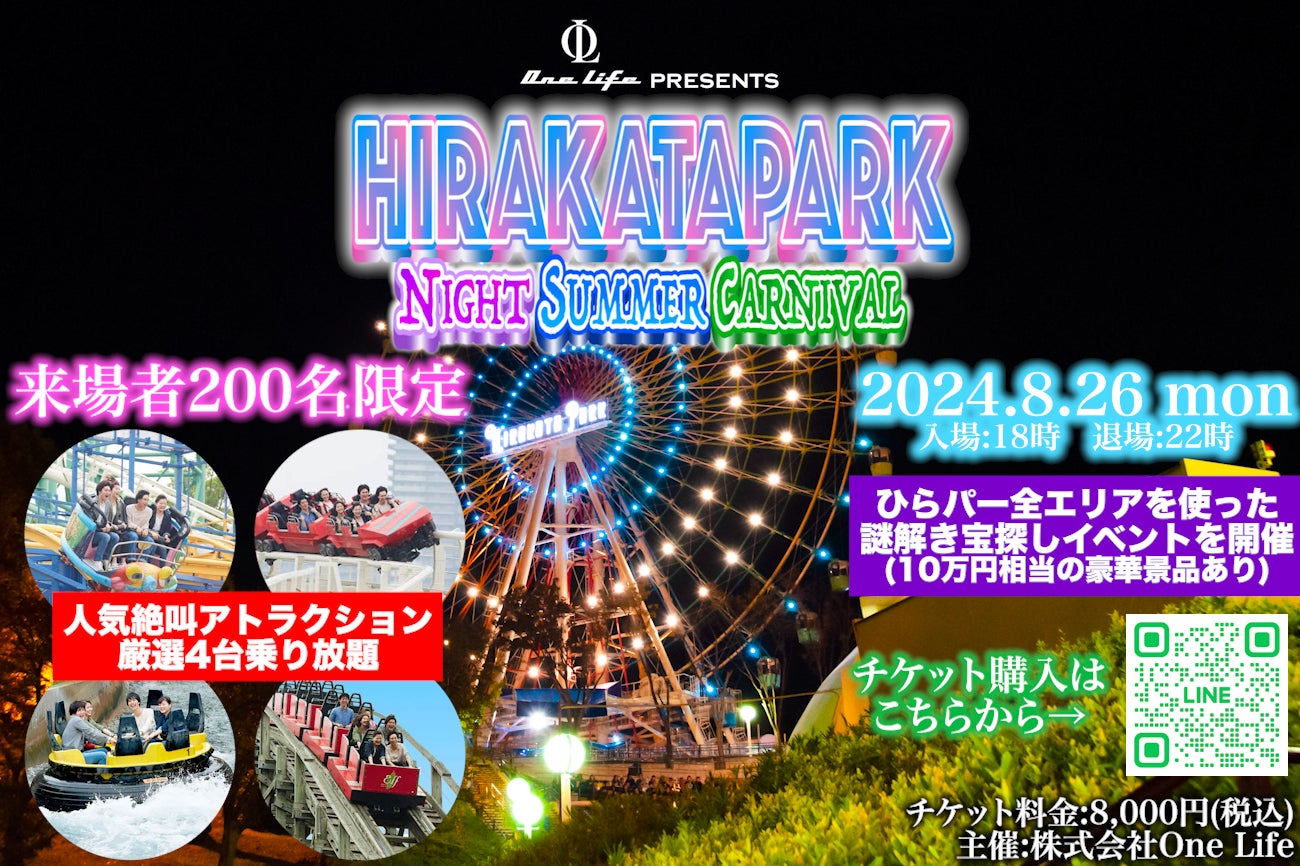 さらに、ひらかたパークを貸し切って謎解き宝探しイベント『HIRAKATAPARK NIGHT SUMMER CARNIVAL』を2024年8月26日に開催します。