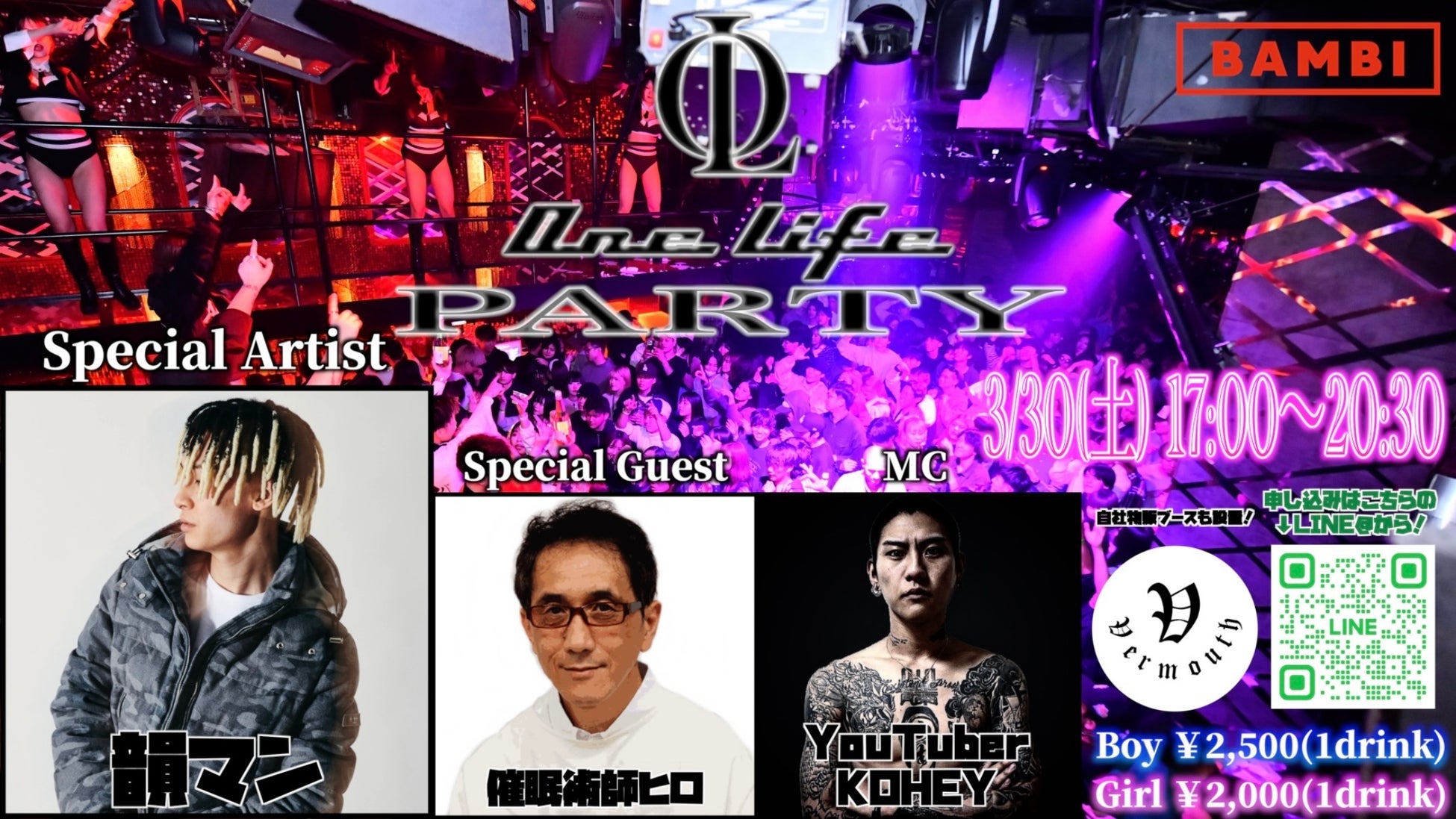 また、大阪ミナミのモンスタークラブBAMBIを貸し切ってパーティイベント『One Life PARTY』を2024年3月30日に開催します。