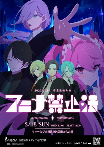 - 学生の成果発表の場として、2月18日に新潟市民芸術文化会館りゅーとぴあで舞台「アニメ禁止法」が上演される。