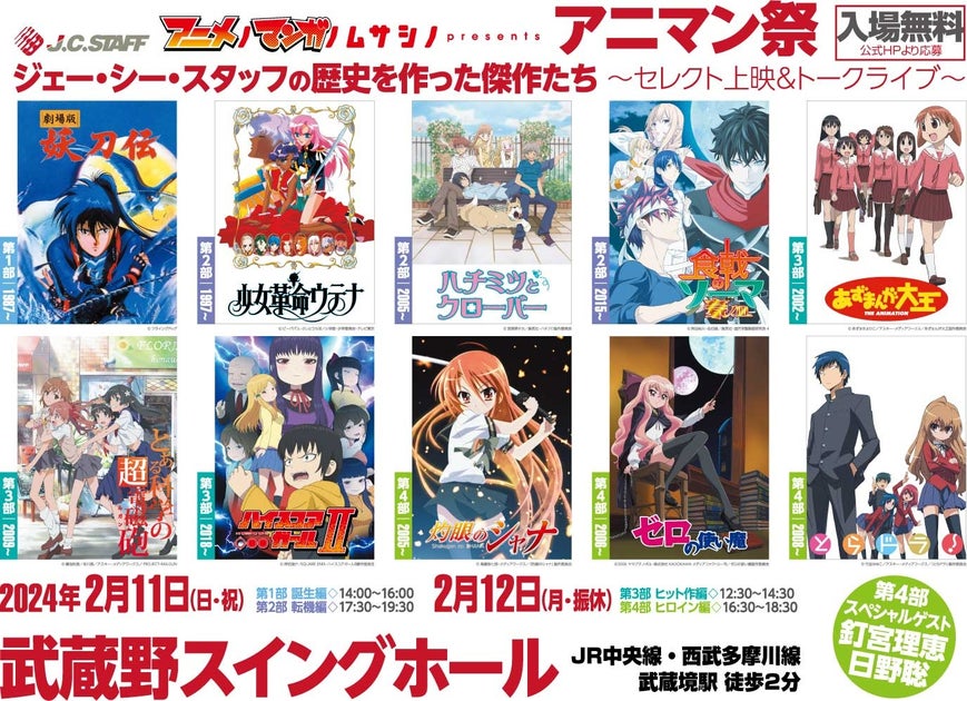 - 2月12日には『あずまんが大王 THE ANIMATION』『とある科学の超電磁砲』『ハイスコアガールII』の上映とトークライブが開催される