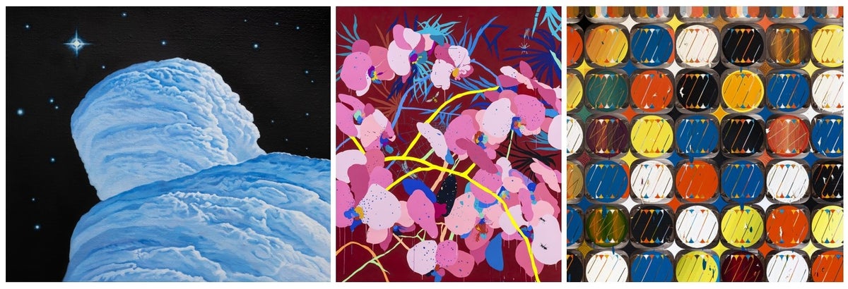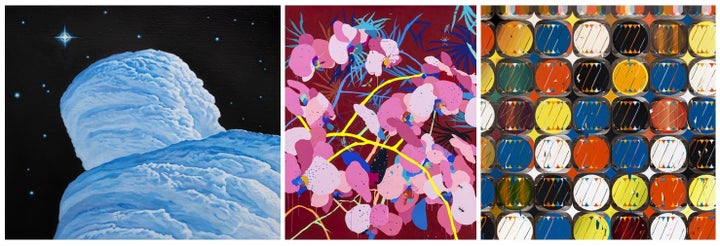 イ・チェウォンは自然の神秘を表現し、キム・ジヒは架空の庭園を描き、キム・ソウルは絵画の論理を解体し再構築しています。