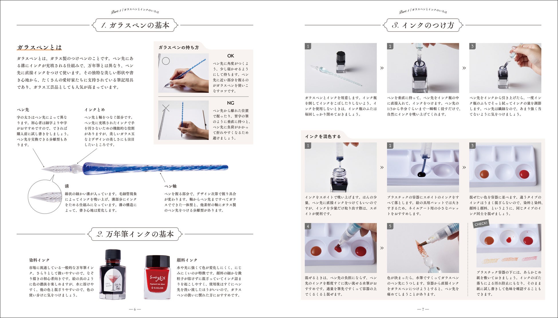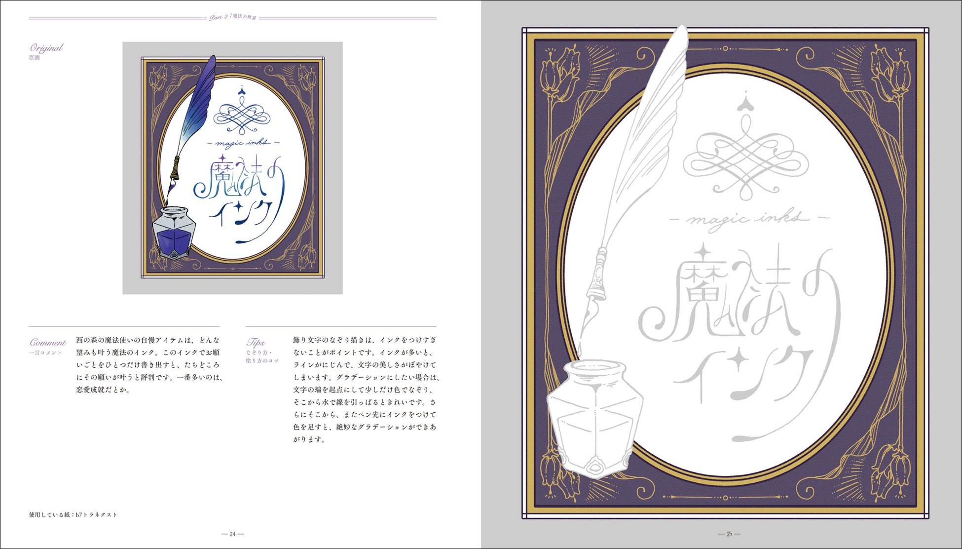 「ファンタジックイラスト」は、ガラスペンと万年筆インクを使って美しいイラストや文字を描くための本です。