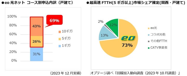 - 提供エリアは関西最大の173市町村に広がっており、新規契約者の6割以上が超高速コースを選択