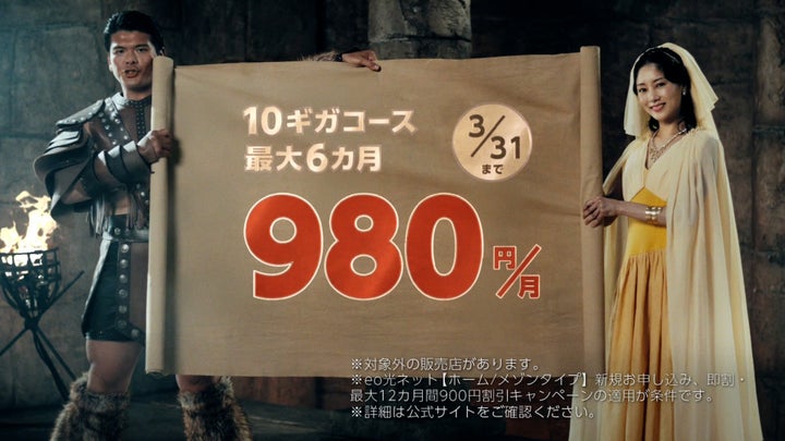 - CM内では、新規お申し込みで最大6カ月間980円/月のキャンペーンを紹介