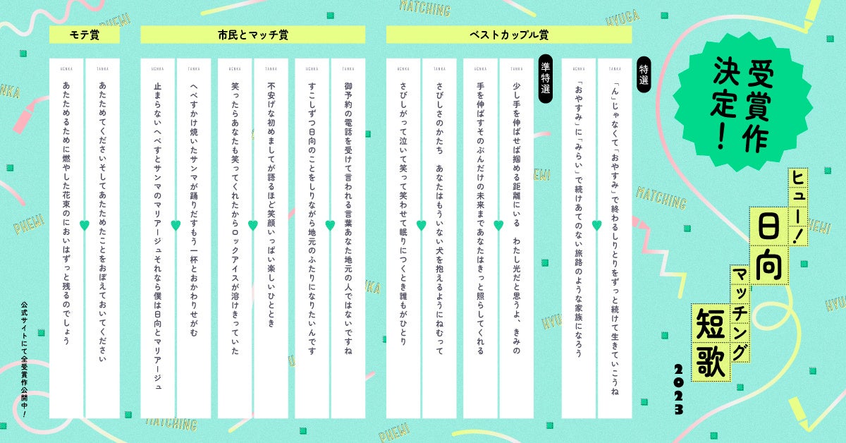 今年は短歌をテーマにしたマッチングサービス『ヒュー!日向 マッチング短歌2023』が開催され、1417首の短歌・返歌投稿から745ペアがマッチングしました。