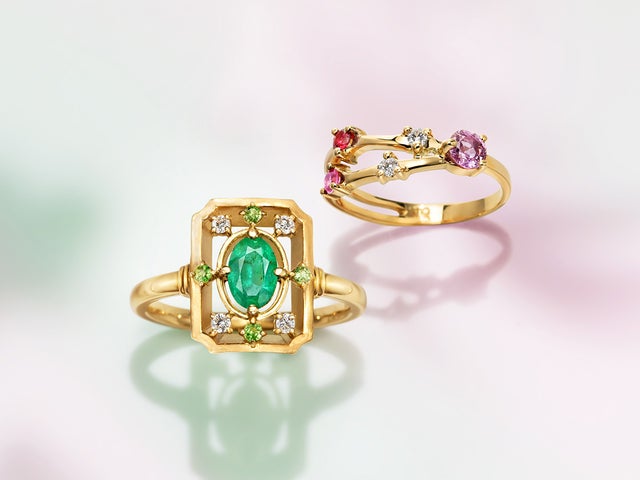 このコレクションは、カラーストーンを使用したジュエリーで、日本の桜とパリの庭園をテーマにしています。