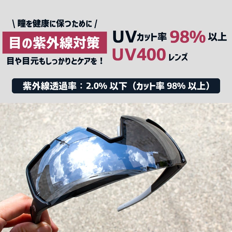 大きめのワイドレンズで目元を広範囲に紫外線から守り日焼けを防止します。