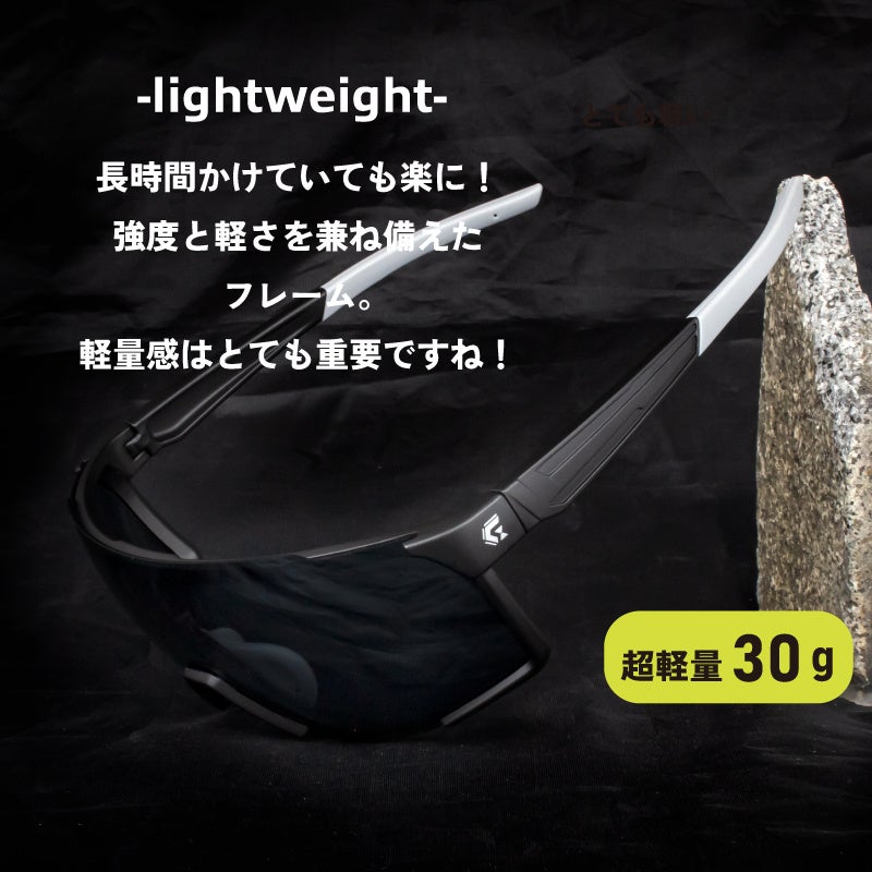 さらに偏光レンズにする事で眩しさを抑えクリアな視界を確保し目の疲れを防止。