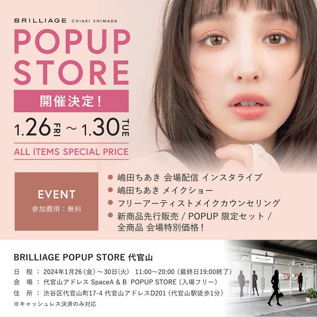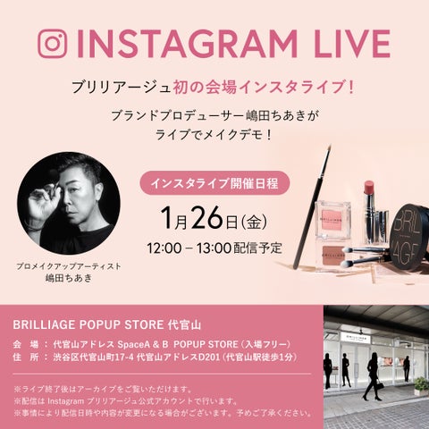 さらに、ブリリアージュのブランドプロデューサー嶋田ちあきによる公開インスタライブやメイクショーも開催されます。