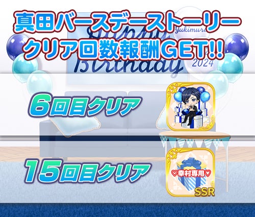 真田幸村の誕生日を祝うストーリーが配信され、イベントストーリーをクリアするとボイス付きの豪華スチルが手に入ります。