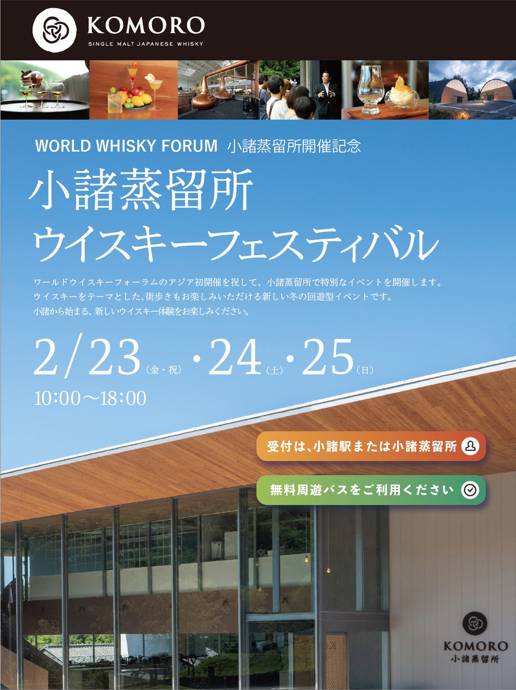 小諸蒸留所は、ワールド・ウイスキー・フォーラムの開催を祝して、「小諸蒸留所ウイスキー・フェスティバル」を共催します。