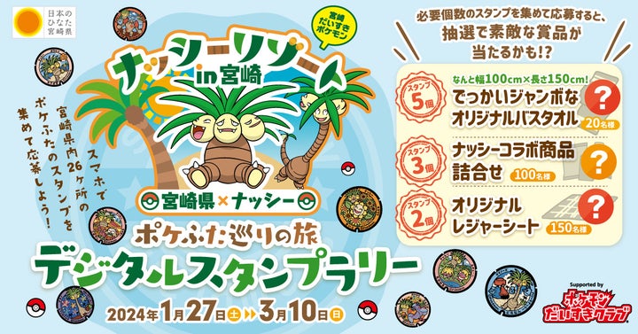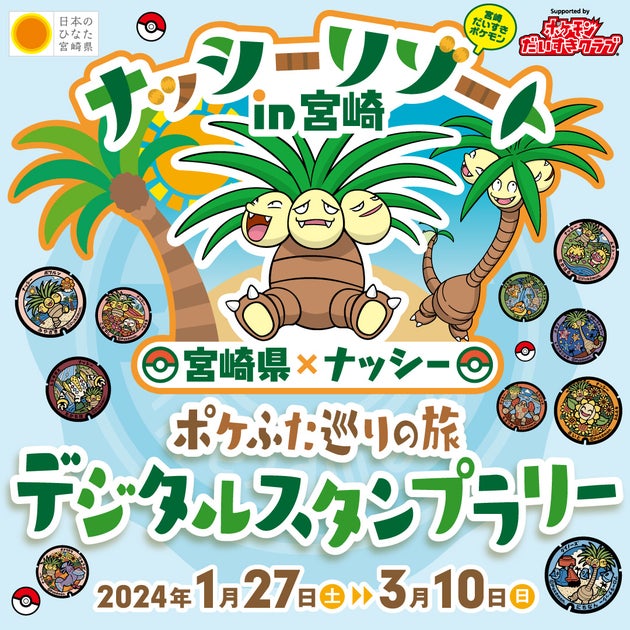 宮崎県内の26市町村に設置された「ポケふた」を巡るデジタルスタンプラリー、ナッシーリゾート in 宮崎『ポケふた巡りの旅 デジタルスタンプラリー』が開催されます。