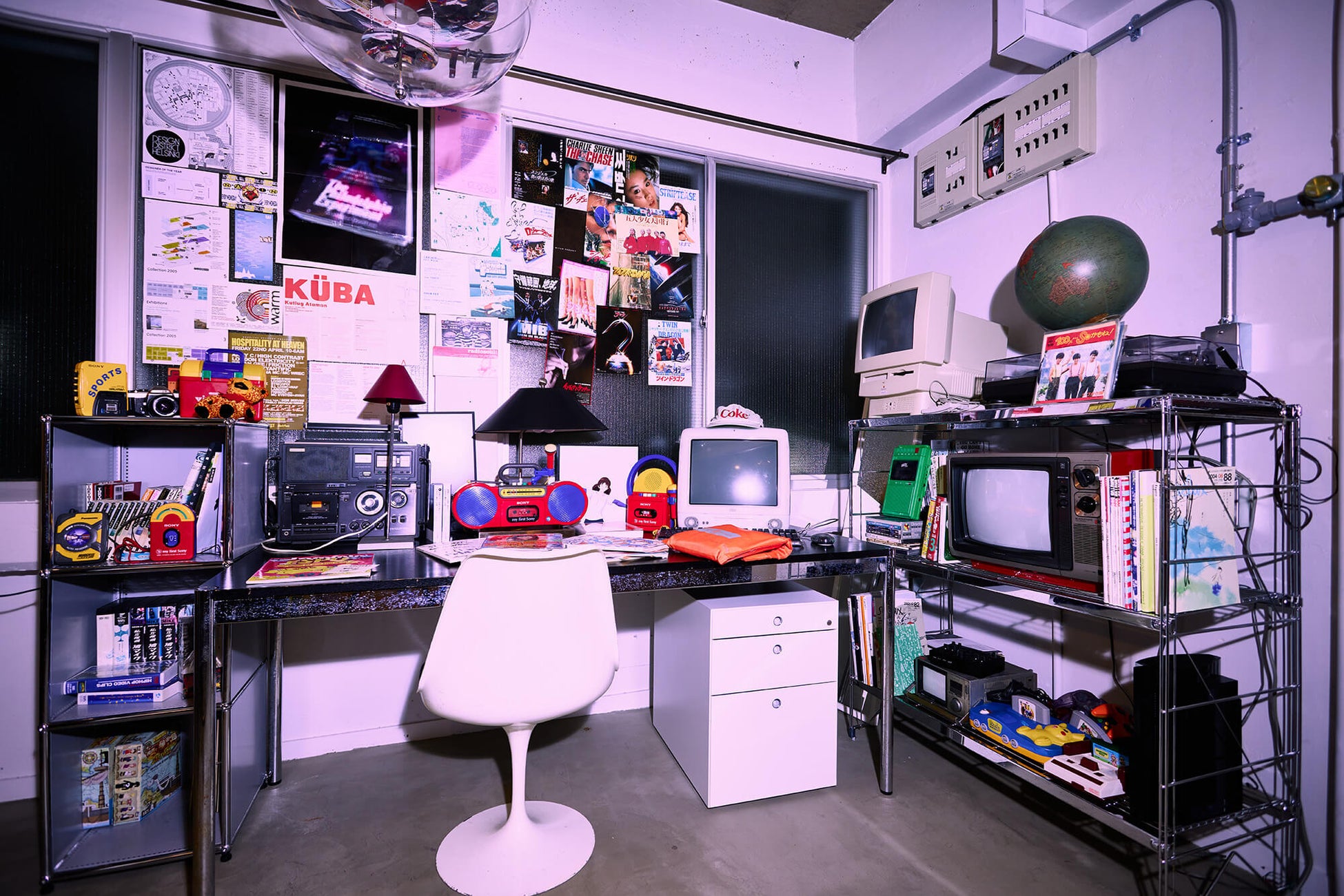 - デスクスペースでは、スタッフが集めたレトロなアイテムを展示し、「レトロ博物館」のような雰囲気を醸し出している