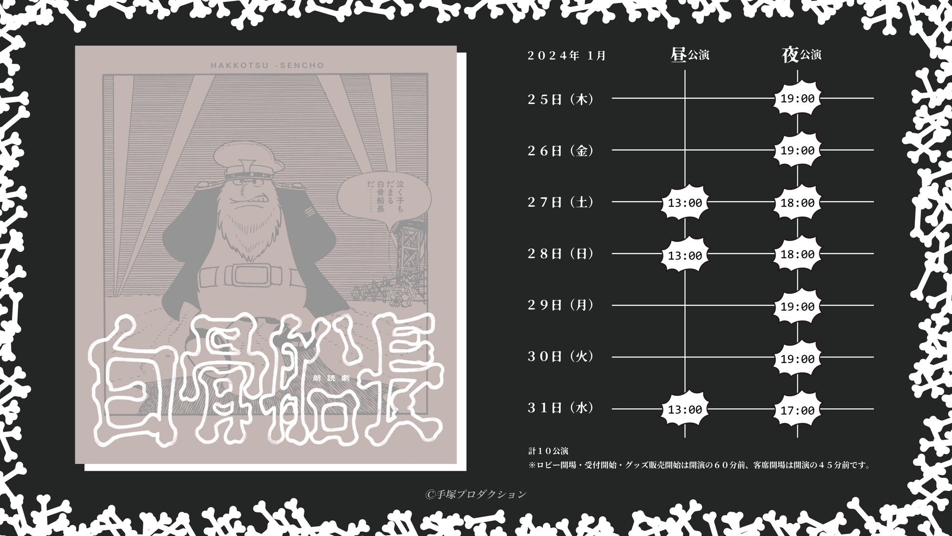 2024年には、手塚治虫の名作短編「白骨船長」の朗読劇が上演されます。