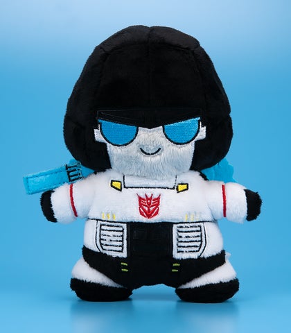 今回のぬいぐるみには、「メガトロン」「メガトロン シャッタードグラスver.」「スタースクリーム」「サンダークラッカー」「スカイワープ」という5種類が登場します。
