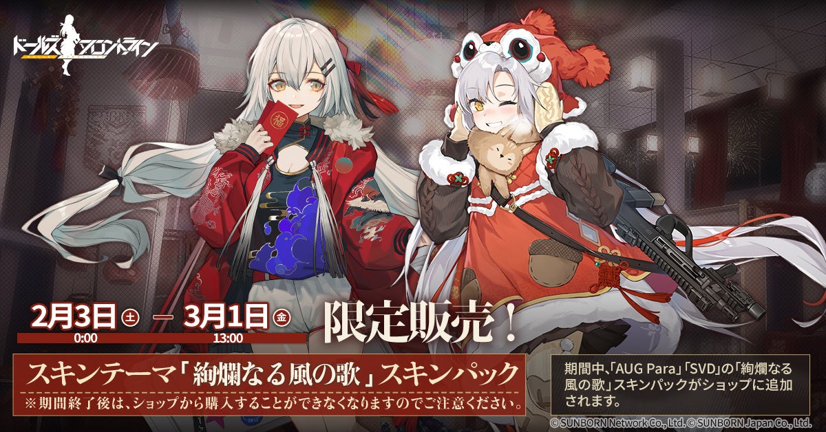 さらに、華やかなチャイナドレスの新スキンテーマ「絢爛なる風の歌」と「前線協定 朝の公園」も開催されます。
