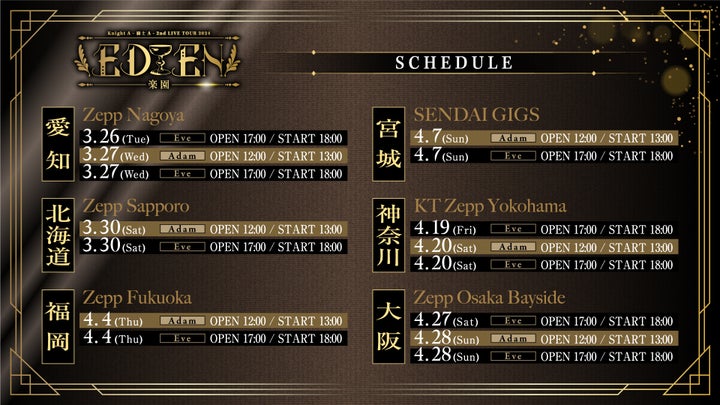 • Knight A 騎士A の2nd LIVE TOUR 2024 EDEN 楽園の詳細が発表された