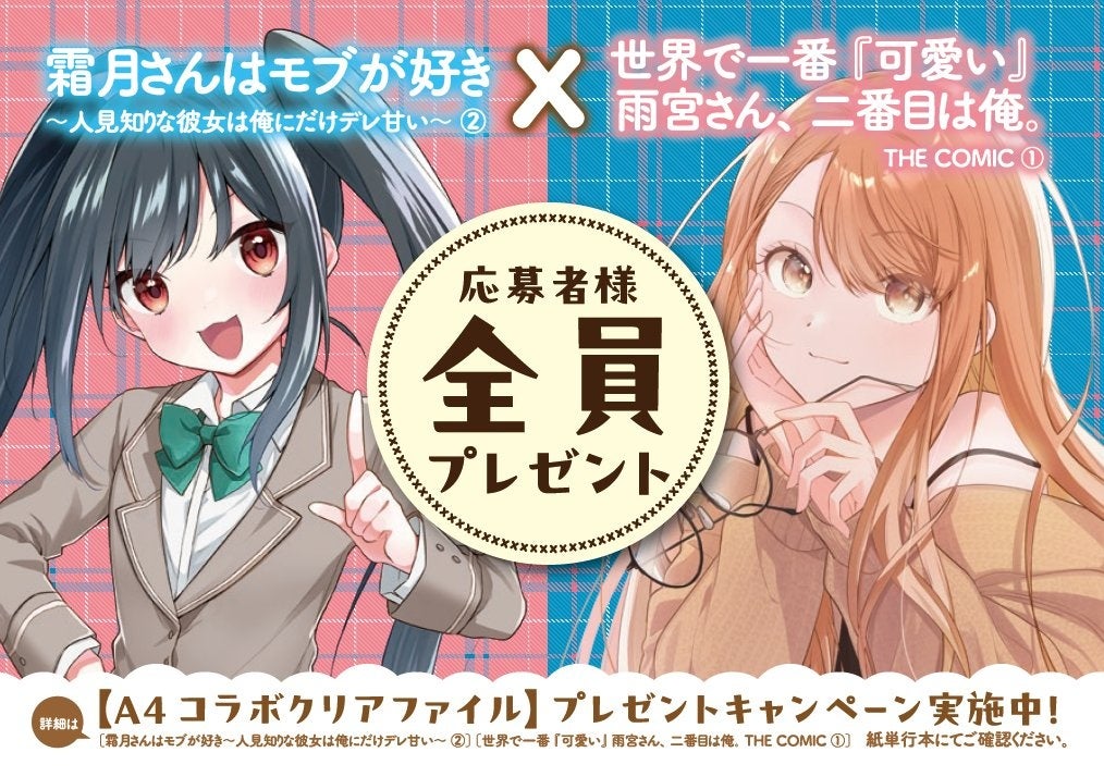 また、同時に発売される「霜月さんはモブが好き~人見知りな彼女は俺にだけデレ甘い~ 2」との応募者全員プレゼントキャンペーンも開催されます。