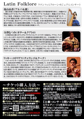 - 2024年3月31日に「ラテンフォルクローレカジュアルコンサート」開催