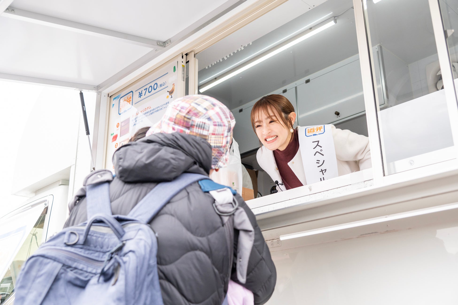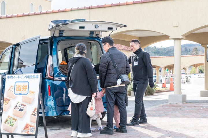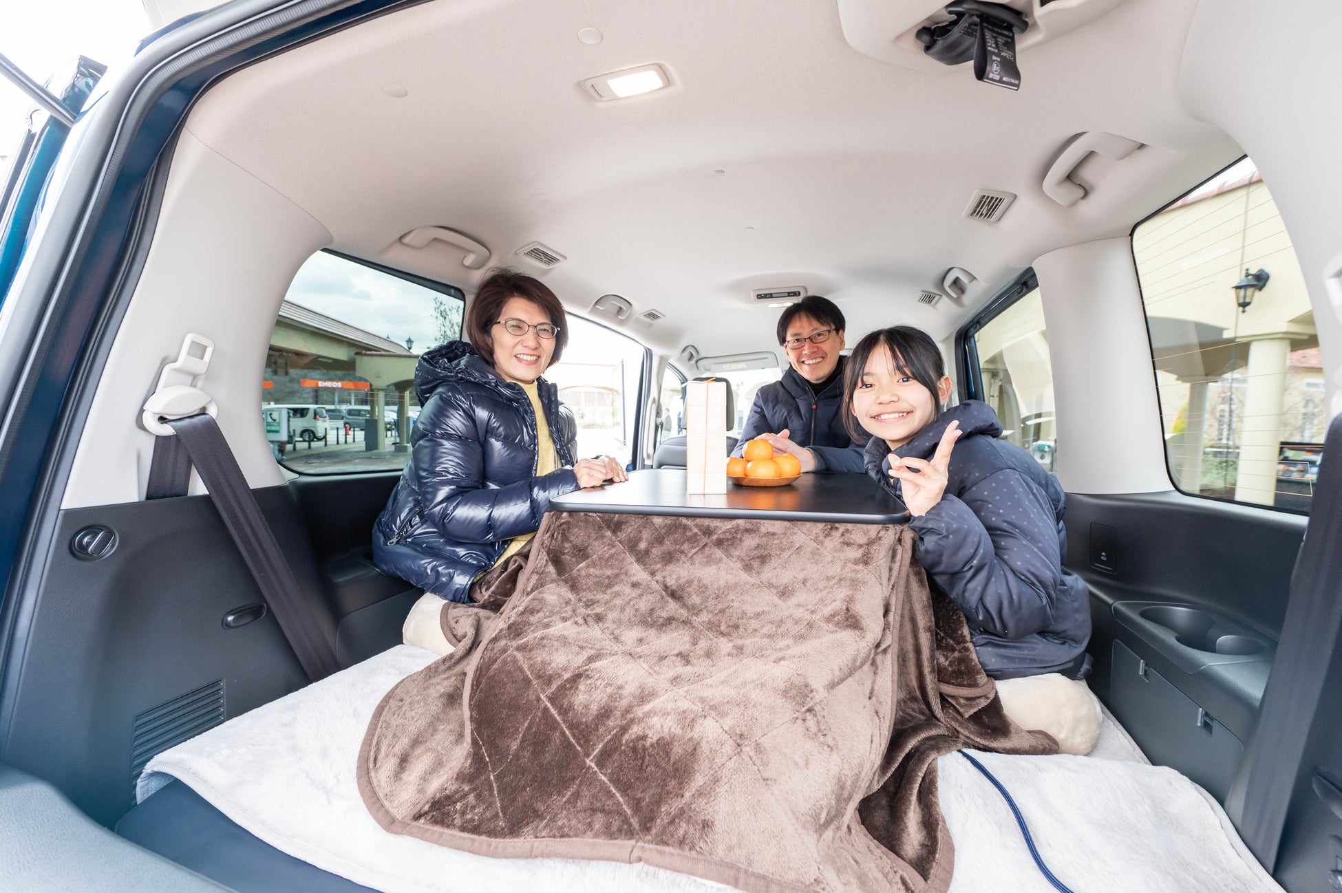 初日の販売会では、セレナにこたつ風テーブルが設置され、イートイン体験もでき、大いに盛り上がりました。