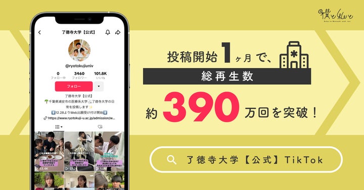 SBCメディカルグループの代表が理事長を務める了德寺大学のTikTokアカウントが、わずか1ヶ月で約390万回再生されました。